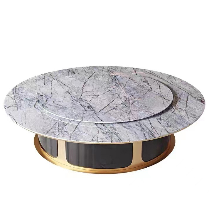 酒店会所大理石豪华大圆桌电动餐桌图